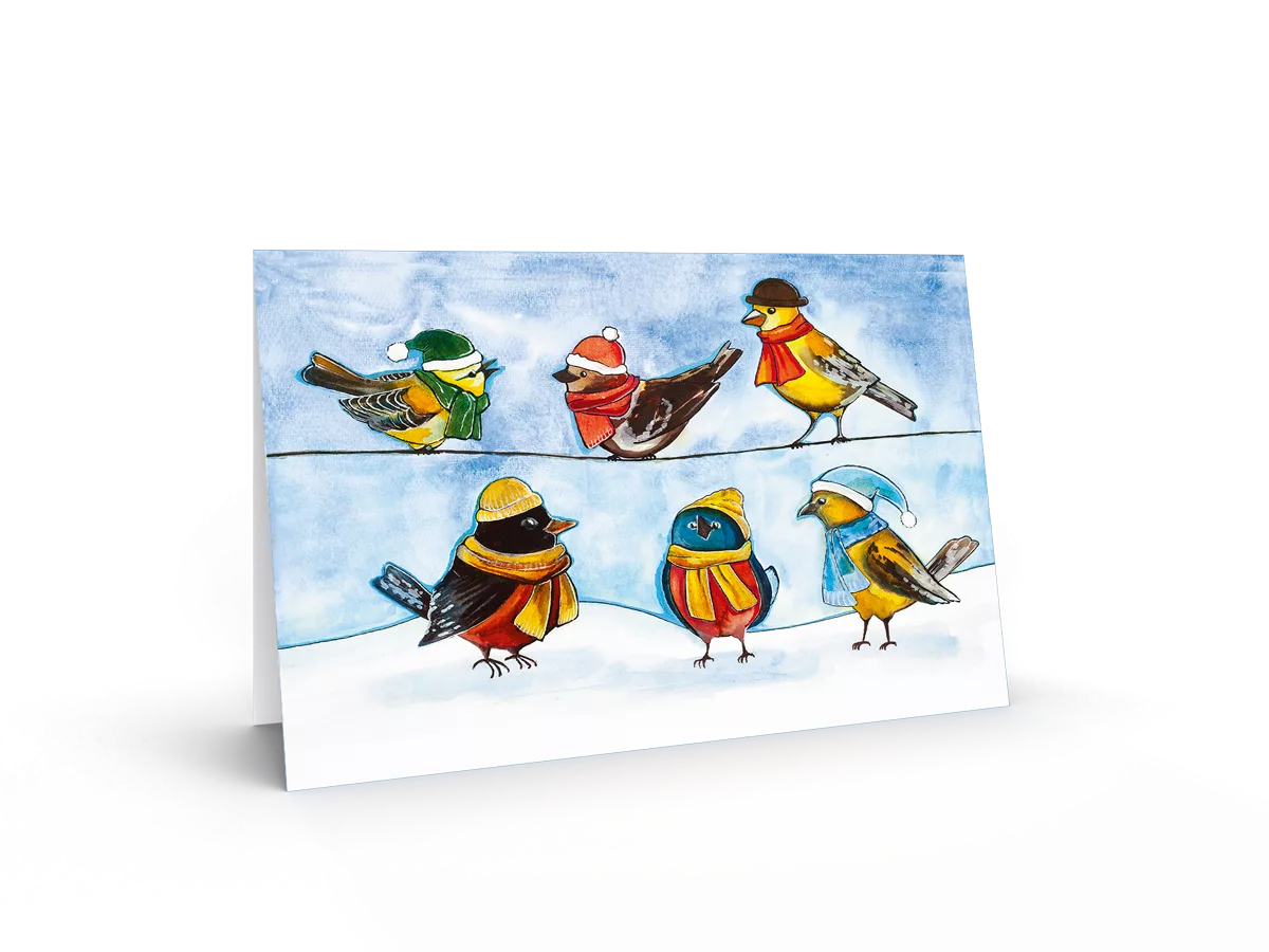 »Wintergezwitscher« Motiv von einer Künstlerin mit Behinderung aus dem atelier lichtzeichen, Hamburg.
